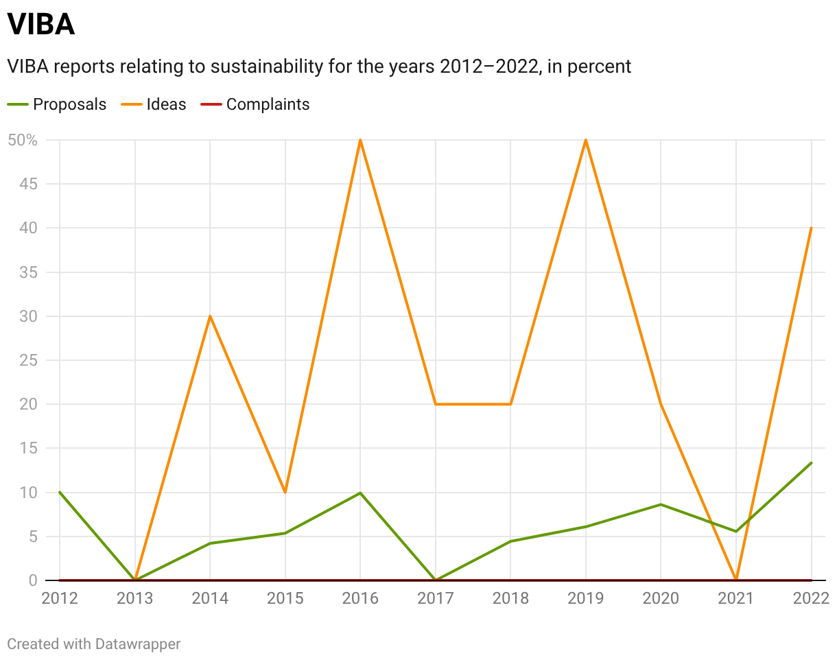 VIBA reports relating to sustainability for the years 2012–2022, in percent